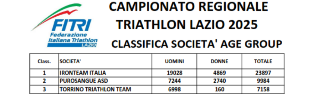 Ironteam Italia – Campioni Regionali Fitri-Lazio 2025 L’Ironteam Italia è orgogliosa di annunciare la conquista del titolo di Campioni Regionali Fitri-Lazio 2025, mantenendo per il terzo anno consecutivo la leadership nel panorama regionale. Un risultato che premia un anno intenso, caratterizzato da impegno, passione e spirito di squadra. Ogni sacrificio, ogni allenamento e ogni gara sono stati affrontati con determinazione e dedizione, confermando ancora una volta l’identità e la forza del nostro team. “Ogni singolo atleta ha contribuito a questo traguardo. Dedico questa vittoria a tutti loro — da chi è in vetta